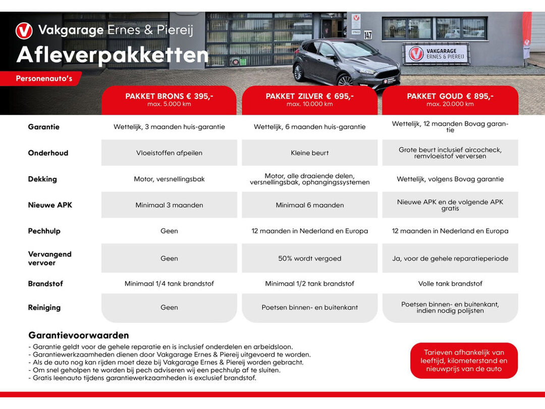 Deze auto word afgeleverd met een van de volgende afleverpakketten: Pakket Brons €395,- / Pakket Zilver €695,- / Pakket Goud €895,- vraag naar de voorwaarden voor meer informatie.